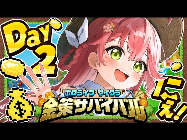 さくらみこがMinecraftで金策サバイバルに挑戦!アスレチックリベンジ成功、農業で大儲け、アリーナ攻略と盛りだくさん。ホロメンとのわちゃわちゃコラボや、ギャンブルでの一攫千金も目指す!
