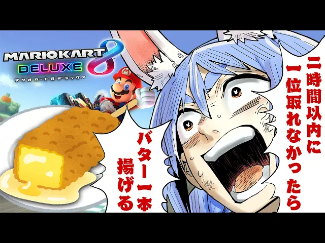 【マリカ8DX】二時間以内に1位を取れなかったらバター1本丸ごと揚げて食べる!!!!!ぺこ!【ホロライブ/兎田ぺこら】