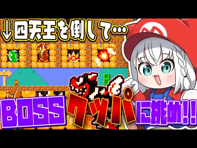 フブキがマリオメーカー2でリベンジ!以前クリアできなかった勇者ステージを見事クリアし、クッパをワンパンKO!SUPERNOVAの演奏ステージやFNAF風ステージもクリア。次回はキラー&ころねコースに挑戦予定!