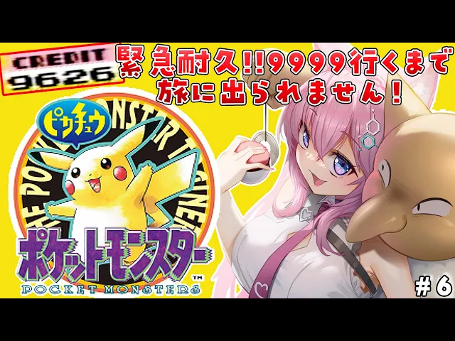 初代ポケモンピカチュウ版クリア配信。スロット9999枚達成直後の手刀誤爆、低レベルでの四天王突破、ボックス満杯でのミュウツー捕獲など、ハプニング続出で大盛り上がり。スリーパーが大活躍し、数々の困難を乗り越えて見事殿堂入りを果たした。