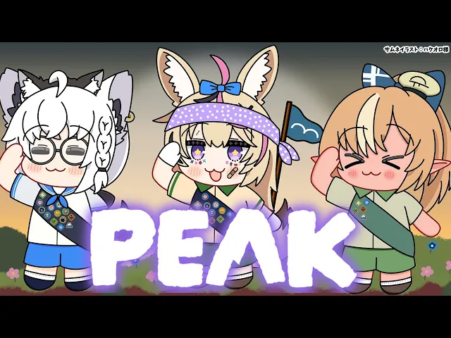 フレア、ポルカ、フブキの3人で登山ゲームPEAKに挑戦。ポルカが呪いの頭蓋骨で白骨化したり、フブキが合流してプロ登山家としてアドバイスを送ったりと、笑いあり涙あり(?)の登山劇。最後は感動のクリア!
