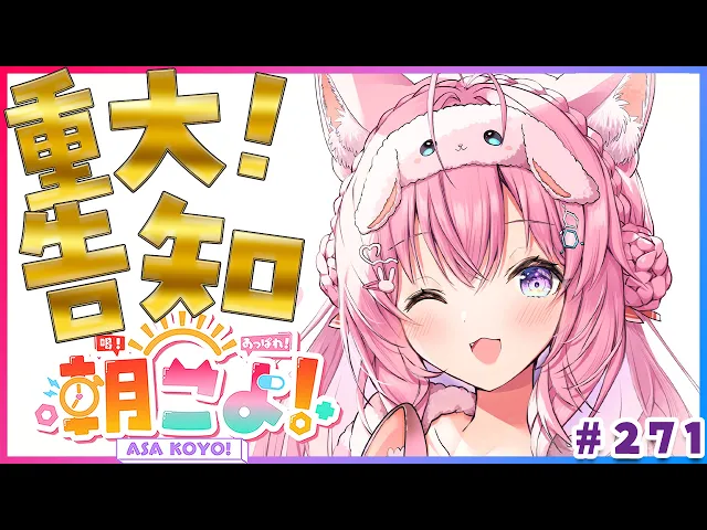 配信休み中に急遽行われた朝配信での重大告知まとめ。グッズ情報や復刻ボイス、空港POP UP、holox関連、新作もふこよなどの話題を経て、最大の発表は『デジモン ビートブレイク』への声優出演(しかも二役)。視聴者は祝福と驚きと期待、録画やリアタイ宣言が多数。配信内のコーナーや謎の“噛み跡”調査も盛り上がり、全体に喜びとお祝いムードが広がった。