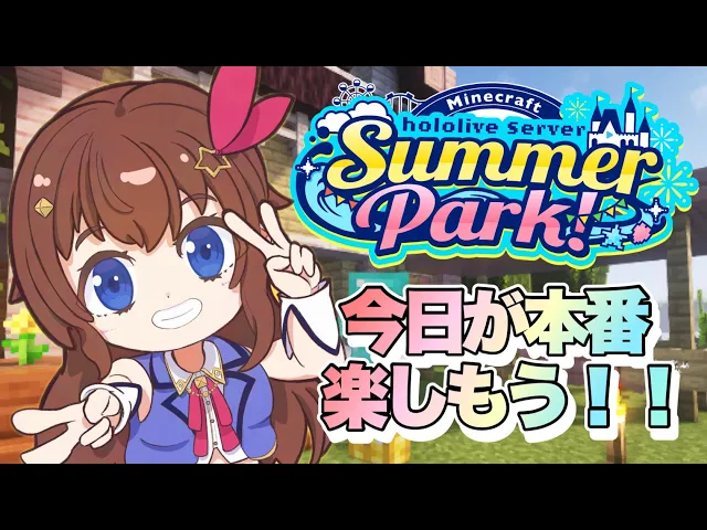 ときのそらがホロライブサマーパークを満喫!キアラ、イナ、アーニャ、ロボ子さん、はあちゃま等とアトラクションやお店を巡り、花火やホラーマンションも体験。参加者との交流やハプニングもあり、最高の夏の思い出となった。