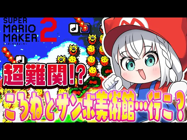 フブキがマリオメーカー2で、ころね制作の激ムズ「サンボ美術館」に挑戦。クリア率0.6%の難関コースに2時間半挑み、スピンジャンプを習得、成長を見せ見事クリア!POW連呼や可愛すぎるリアクションも満載で、視聴者も大興奮。次回のマグナムキラー再挑戦も楽しみ!