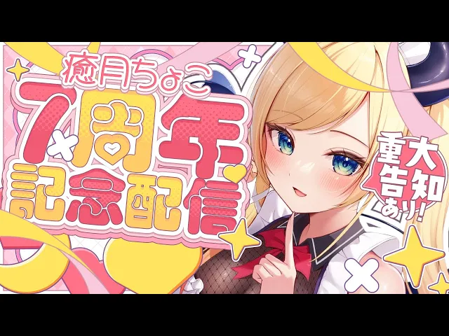 癒月ちょこ先生の7周年記念配信まとめ。歴代衣装を振り返りつつ、YAGOO社長との秘話や3Dモデル裏話も。重大告知はLINEスタンプ制作決定!先生の熱い想いと今後の抱負に、リスナー感激&応援!