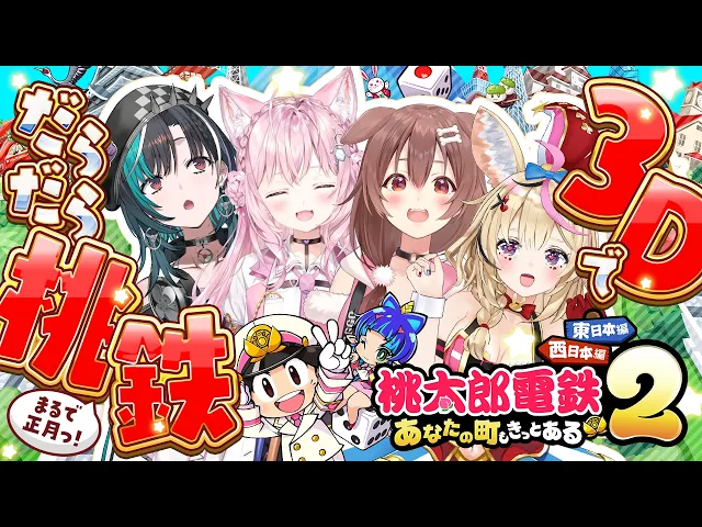 3Dでまったり長時間の桃鉄コラボが大盛況。ゆるい雑談と珍展開、3Dならではの動きや事故で終始わちゃわちゃし、こよりの強さと全員の見せ場が光った。