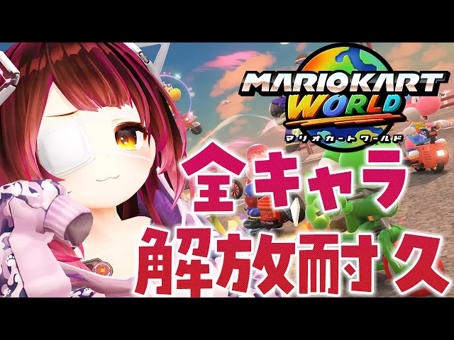 ロボ子さんがマリオカートワールドの全キャラ解放耐久配信を実施。レアキャラ出現に苦戦しつつも、衣装全解放やポイハナゲットに成功。配信中にフラグを回収する展開や、視聴者との雑談も盛り上がり、長時間配信となった。次回こそコンプリートを目指す。