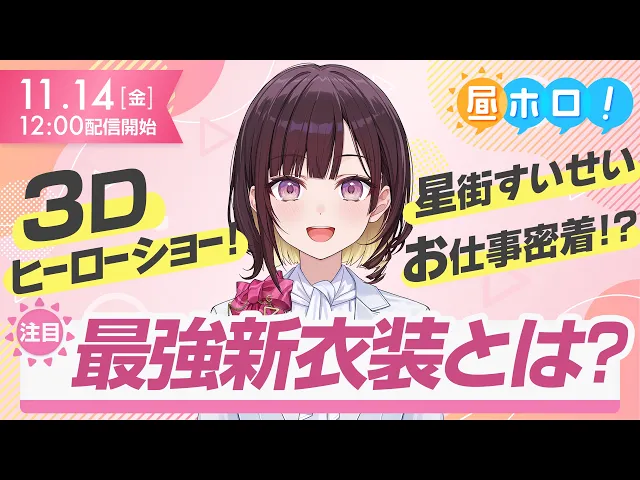 ホロライブ最新情報を伝える井月みちるの昼ホロ。アンケート機能にハマり、FG歌みたリレーやReGLOSSアルバム情報を紹介。ラミィ生誕祭でのヒーローショー企画やこより新衣装に注目しつつ、持ち前の笑い声「イヒヒ」で視聴者を魅了。