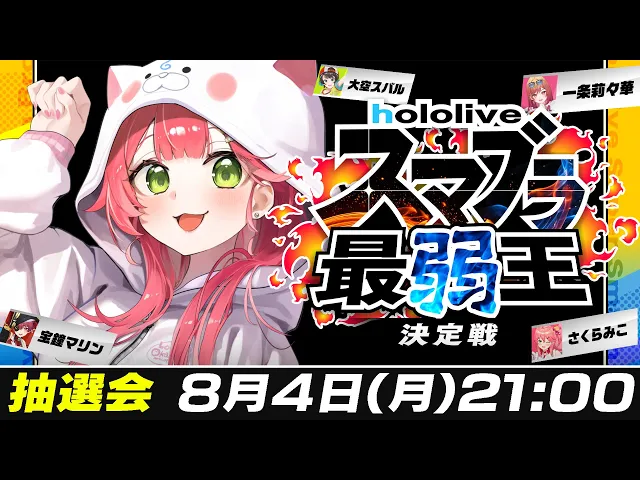 さくらみこ主催のホロメンによるスマブラ最弱王決定戦のトーナメント抽選会。配信トラブルでコメント欄が一時停止するも、みこの神対応で乗り切る。波乱含みの対戦カードが決まり、誰が最弱王になるのか予想不可能!波乱必至の大会が楽しみ!