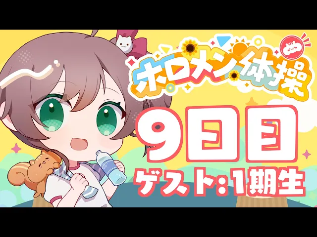夏色まつり主催のホロメン体操9日目。1期生からアキ・ローゼンタールとはあちゃまがゲスト参加。寝坊したフブキを気遣う一幕も。体操後のトークでは、夏に食べたいものについて語り、1期生コラボの告知も行われた。