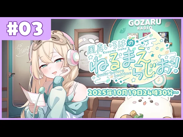 風真いろはのねるまえらじお#3。リスナーからの質問コーナーでは歌の覚え方や集中力維持の方法を披露。マネージャーからのリークコーナーでは、さかいさんだーとの馴れ初めエピソードが明かされた。癒やしボイスで月曜の憂鬱を吹き飛ばす。