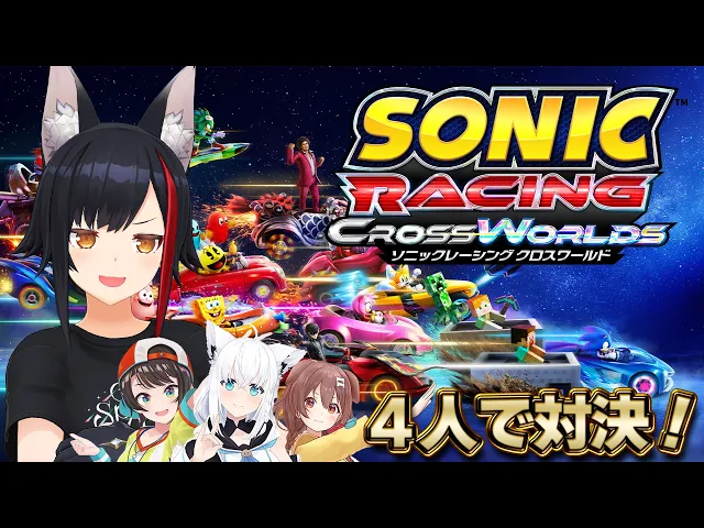 大神ミオ、宝鐘マリン、猫又おかゆ、戌神ころねの「偽ゲーマーズ」メンバーでソニックレーシングをプレイ。アトラクションのような派手なコースと自由すぎるカスタマイズで大盛り上がり。特にくら寿司カーでの走りやマイクラコラボコースが話題に。白熱のデッドヒートも最高潮で、視聴者も絶賛した楽しいコラボ配信。