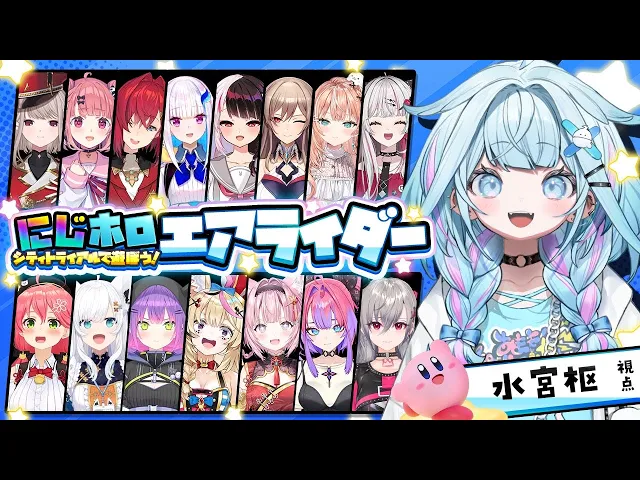 にじさんじ×ホロライブの大人数エアライダー配信まとめ。16人規模でワチャワチャの大混戦、笑いとカオスが満載。水宮枢は被弾するも叫びながら成長を見せ、レースで上位獲得もあり。箱外コラボの交流が楽しかった。