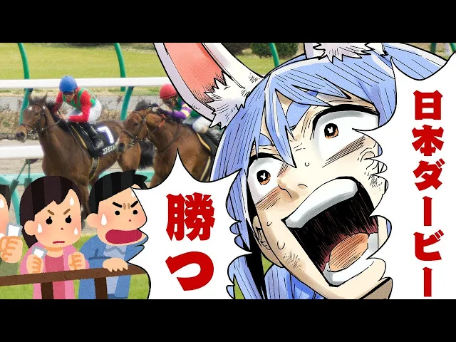 兎田ぺこらが日本ダービーに50万円を賭けるも惨敗。初のワイドに挑戦するも当たらず。しかし、パドックでの直感は当たっており、クロワデュノールを推奨。競馬予想の難しさと楽しさを改めて感じたぺこらは、次回の宝塚記念でのリベンジを誓う。