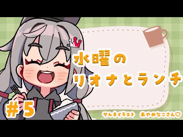 響咲リオナのランチ雑談配信。リスナーのランチ紹介や近況報告、料理の話題で盛り上がる。梨好きが判明したり、むくみ対策の話が出たり、美容への関心も垣間見える。今後の配信予定も告知され、リスナーとの交流を楽しむ様子が伺える。