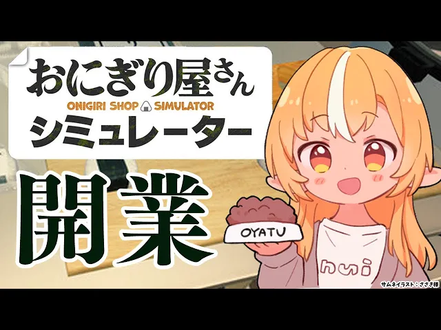 フレアがおにぎり屋さんシミュレーターをプレイ。難易度「やさしい」でスタートするも、初日から米を研がない、具なしおにぎりを提供するなど、いつものやばい店主っぷりを発揮。焼きおにぎりや鮭おにぎりなど新メニューにも挑戦し、最終的にはお店の評価が星5になるまでやり込んだ。