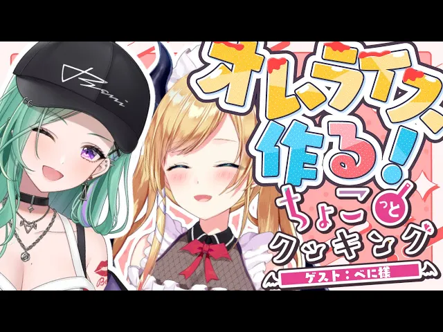 癒月ちょこ先生と八雲べにのコラボクッキング配信。愛情たっぷりオムライス作りに挑戦!互いの家でのエピソードや趣味の話で盛り上がり、手作りオムライスを実食。互いの愛情表現に照れつつ、次回の料理コラボを約束する、ほのぼのとした時間。