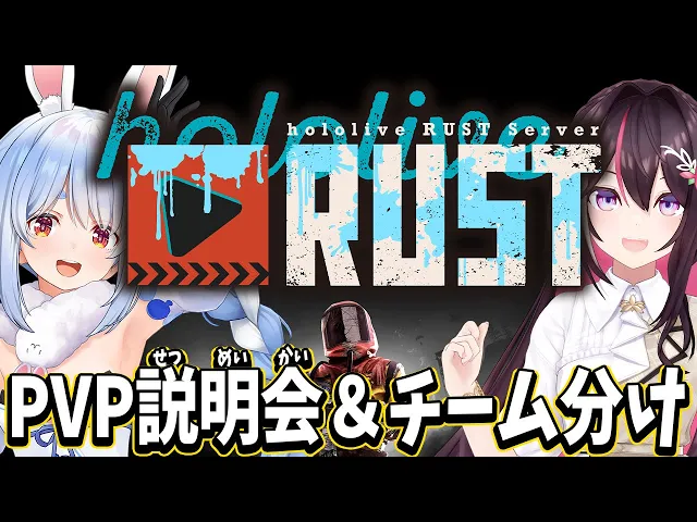 ホロライブRUSTのPVPイベント説明会とチーム分けの様子。経験者と初心者混ざり、バランスの良いチーム分けに期待が高まる。ルールはシンプルで分かりやすく、裏切りやドラマも期待される。参加者それぞれの個性が爆発し、2日間の熱い戦いが繰り広げられそうだ。