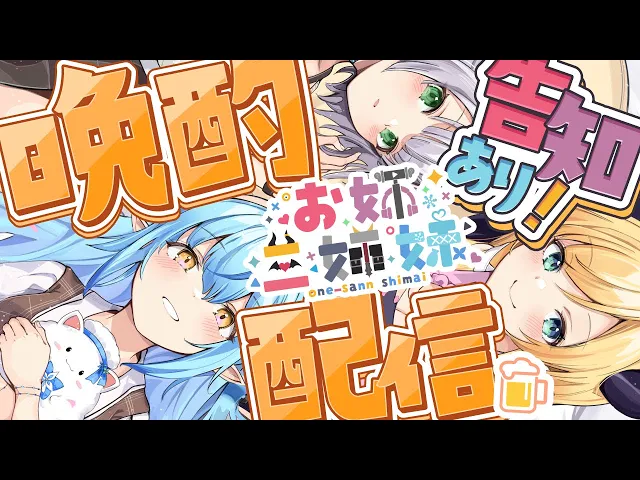 お姉三姉妹(癒月ちょこ、白銀ノエル、雪花ラミィ)による晩酌コラボで、視聴者の投稿マシュマロを交えた甘酸っぱいバレンタイン話や笑い話が満載。久々の声や掛け合い、重大告知(生誕祭)への期待も高まり、配信は終始和やかで盛り上がった。
