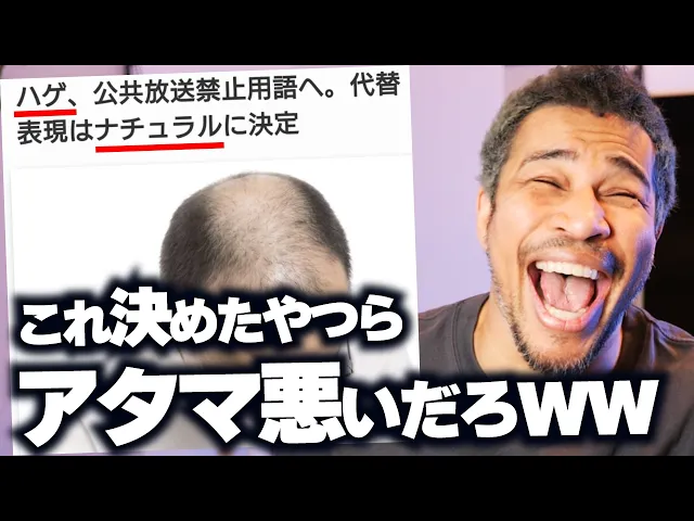 ハゲを言い換えて「ナチュラル」にしようという話題で大喜利化。侮辱の回避どころか別の煽りになり、芸人ネタや商品名、ガンダム用語まで巻き込んで混乱している。