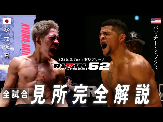 RIZIN.52の告知動画に対する視聴者コメントを2ちゃんねる風に要約。チャーリーガイドのスポンサー化や解説の分かりやすさを評価する声、相本・秋元・木村ら日本勢への期待と懐疑、シェイドラエフら外国勢招聘希望、PPV購入やチケット不安の話題、好カードへのワクワク感と一部の煽りや皮肉が混在。見どころはパッチー・ミックスvs秋元、木村戦、重厚なヘビー級不足への疑問など。