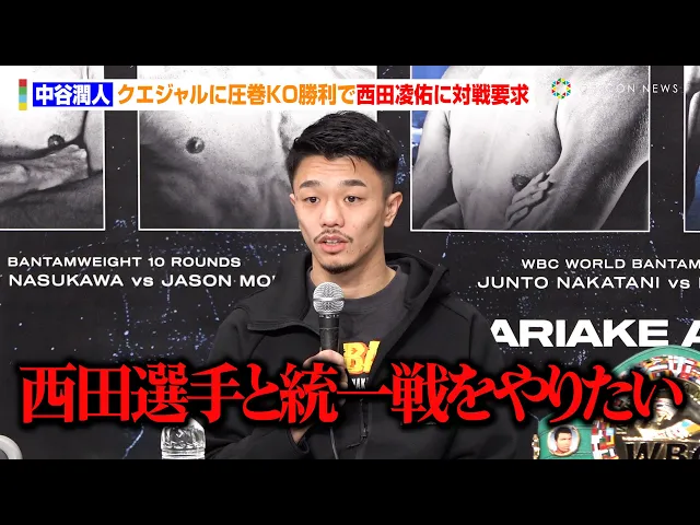 中谷潤人、クエジャルに圧巻KO勝利 IBF王者・西田凌佑に対戦要求「統一戦をやりたい」 『Prime Video Boxing 11』試合後インタビュー