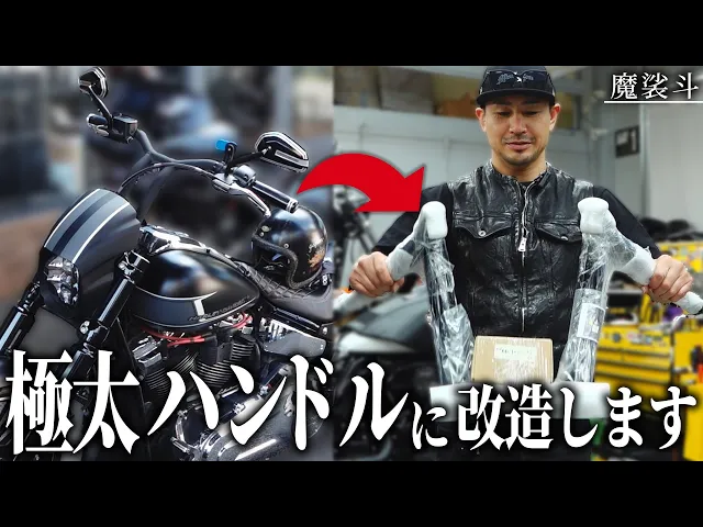 魔裟斗がハーレー・ブレイクアウトに般若バーを装着!視聴者からは「イケオジ」「センスの塊」と絶賛の声。カスタム談義や安全への意見も飛び交う、バイク愛溢れる動画。