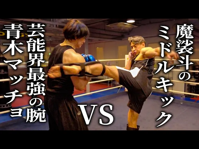 魔裟斗が青木マッチョに筋トレ指導。青木の規格外の肉体に驚愕しつつ、腕相撲対決で実力を試す。視聴者からは青木の格闘技転向を期待する声や、風吹ケイとの関係をほのめかすコメントも。