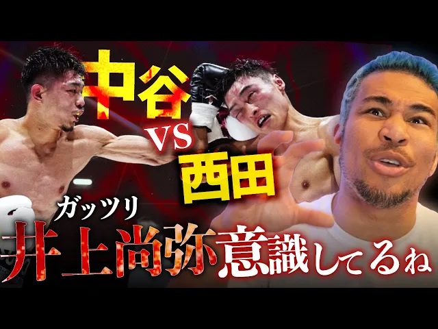 バンタム級統一戦、中谷潤人が初回から猛攻で西田を圧倒。西田も応戦するも、中谷の勢いは止まらず。肩の脱臼や目の負傷により西田は無念のTKO負け。中谷は井上尚弥との対戦を視野に、その強さをアピールした。ダーティーファイトとの批判も一部あるが、激しい試合展開に会場は大いに盛り上がった。