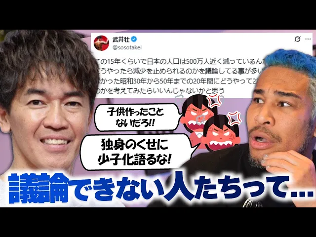 武井壮が少子化対策について私見を述べたところ、「子どもいないくせに」と的外れな批判が殺到。日本人の議論下手、揚げ足取り体質が露呈。背景にはマウント文化や感情優先の国民性も。建設的な議論ができる社会への変化を望む声も。