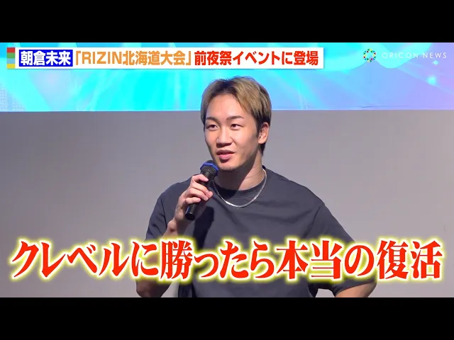 朝倉未来がRIZIN札幌大会前夜祭でファンに勝利宣言。クレベル戦に向け余裕の表情を見せ、チョークか左肘での勝利を予告。ファンからは「覚醒」を期待する声や、過去の敗戦からの成長を評価するコメントが多数。アンチからは「手負い狩り」と揶揄する声も。