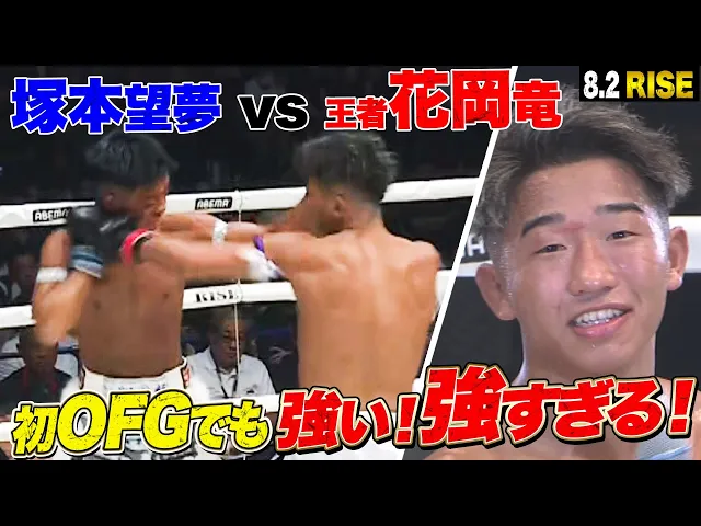 RISE WORLD SERIES、花岡竜vs塚本望夢戦は、花岡が塚本を2RでKO勝利。花岡の圧倒的な強さが際立った試合展開に、視聴者は「年間トップクラス」「強すぎ」と興奮。塚本の健闘を称える声や、花岡の今後の活躍に期待するコメントも多数。
