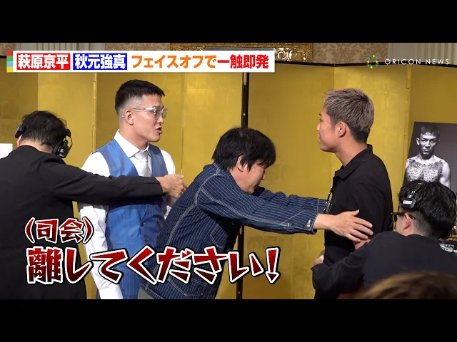 RIZIN注目の萩原京平vs秋元強真。フェイスオフから激しい舌戦が繰り広げられ、スタッフが制止に入るほどの緊張感。試合内容や勝敗予想、選手の過去の因縁、煽り、容姿ネタなど、様々な角度から盛り上がりを見せている。