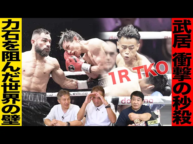 武居の圧勝KOや力石の敗戦を語るスレ。武居の強さ、天心との対戦、力石の怪我や今後について議論が白熱。渡嘉敷のポジティブコメントや亀田家への言及回避など、様々な視点からの意見が飛び交う。