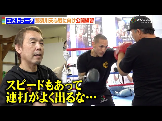エストラーダの公開練習が話題に。無駄のない動き、鋭いジャブ、豊富な手数と高い技術に称賛が集まり、天心陣営への重圧や勝敗予想も盛り上がった。
