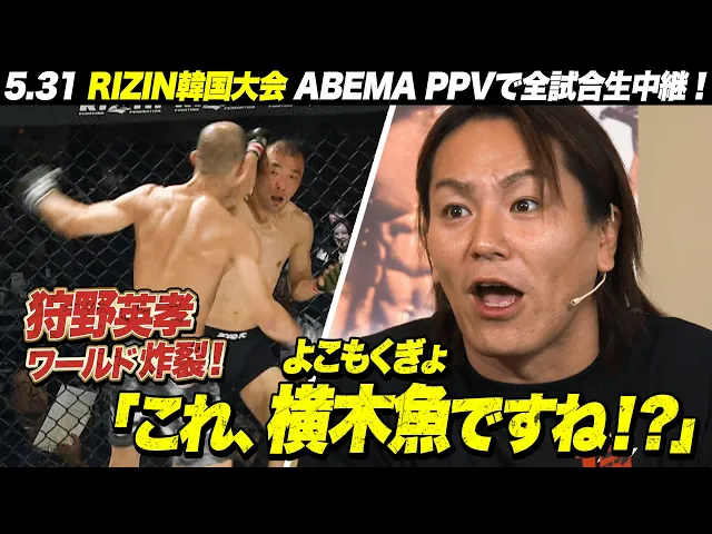 RIZIN解説に挑む狩野英孝とケイト・ロータスの異色コンビ。「横木魚」なる謎ワードが飛び出すなど、狩野ワールド全開。格闘技ファンからも意外な支持を集め、RIZINアンバサダー待望論まで浮上する。
