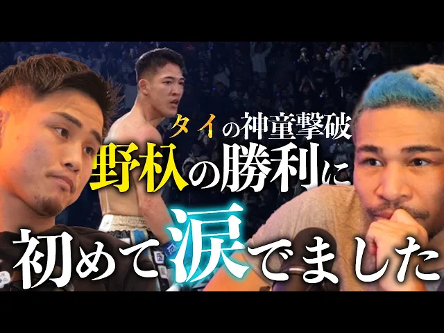 京口紘人とバレンが、野杁正明のタワンチャイ戦勝利を語る。身長ネタや空手経験など、軽妙なトークが炸裂。京口の指導者としての才能を予感させるコメントも。