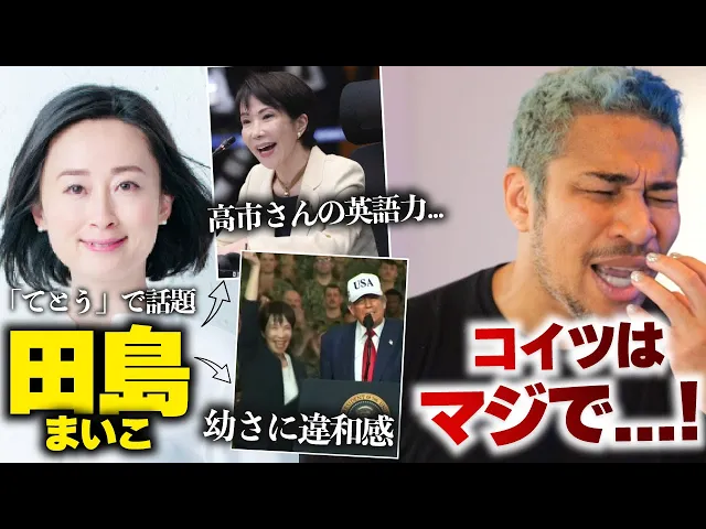 高市総理待望論や的外れな批判コメントに対し、高市早苗氏の外交手腕を評価する声、揚げ足取りへの批判、ボクシングの話をしたい人など、様々な意見が飛び交う。田島まいこ氏の「てとう」という表現に疑問を呈するコメントも見られる。