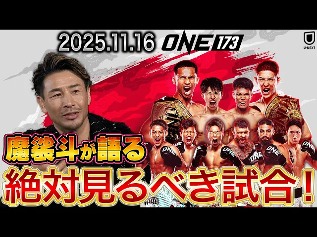 ONE173がU-NEXTで独占PPVライブ配信。魔裟斗出演に期待の声多数。日本人選手の活躍予想や、青木真也への辛辣なコメントも。ロッタンvsノンオーの激突、野杁のカーフキック、和島vsアナンの試合展開など、様々な視点から大会を予想し盛り上がっている。