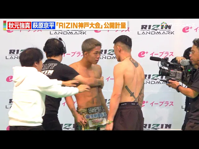 RIZIN LANDMARK 12 in KOBEの公開計量で秋元強真と萩原京平が乱闘寸前に。会場は騒然となるも、両者はプロとして試合を盛り上げ、激しい火花を散らす。萩原は勝利への意気込みを見せるが、ファンからは過去の敗戦を懸念する声も。試合への期待が高まる。